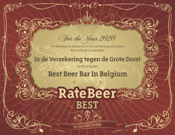 In 2009, “In de Verzekering tegen de Grote Dorst” broke into the top 20 of the best beer destinations in the world. On 14 November 2014, the café reached second place in this global ranking. For ten years – until RateBeer ceased to exist – the Eizeringen café remained, without a single interruption, right at the top of the list of the “best cafés in the world.” Between 2017 and 2020, the inn was even named “Best Beer Destination in the World” three years in a row.